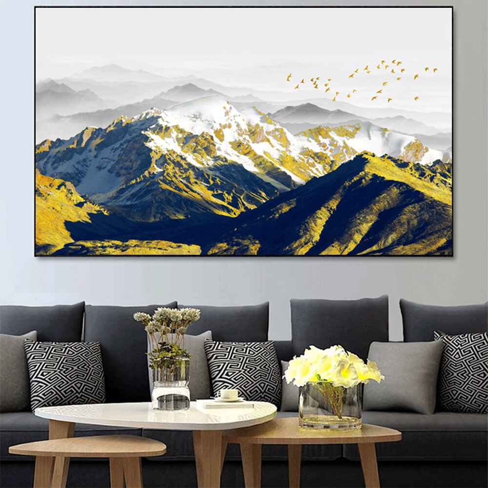 Print Nordic Golden Mountain Painting Wall Art Canvas Prints Wall Pictures Living Room Home Decor No Framed Shopee Malaysia